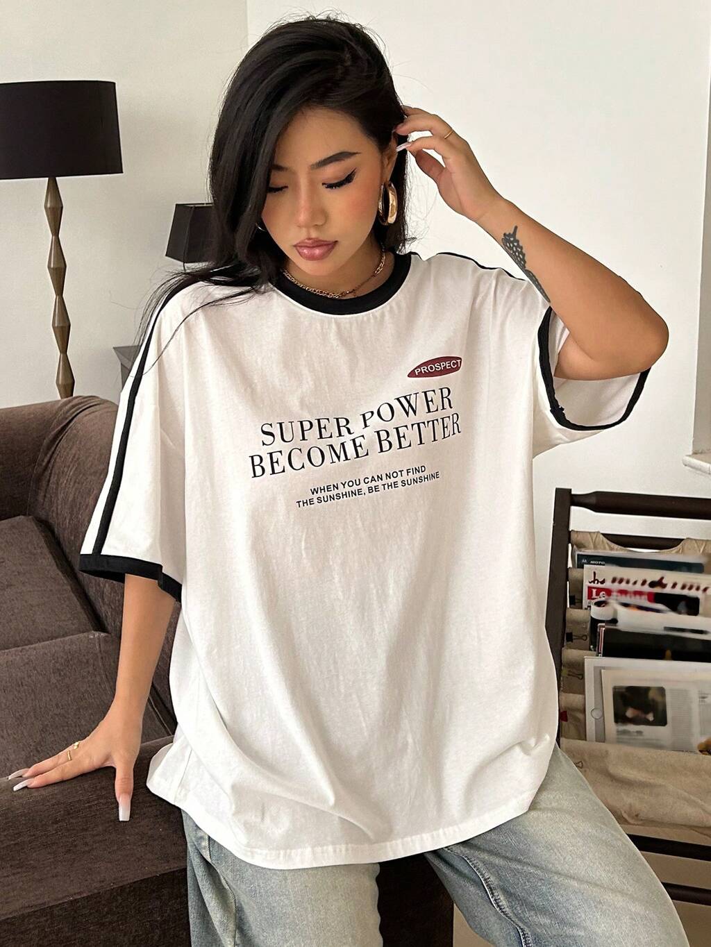 Women's Color Block Drop Shoulder T-Shirt Oversized T-Shirt,Graphic Tees