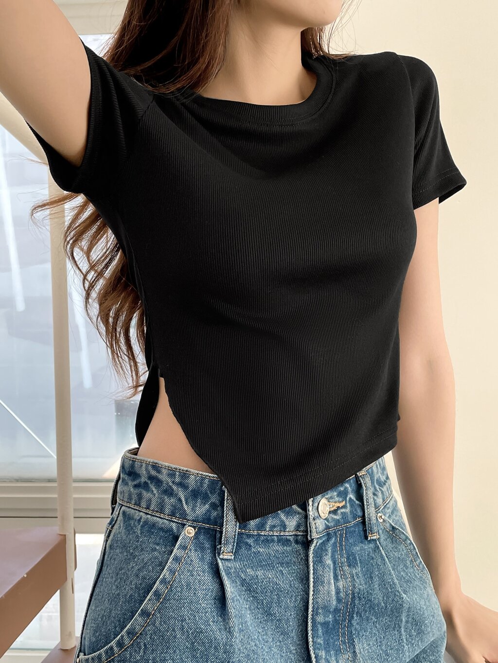 Sommershirt mit seitlichem Schlitz und asymmetrischem Saum, Crop Tops für Frauen