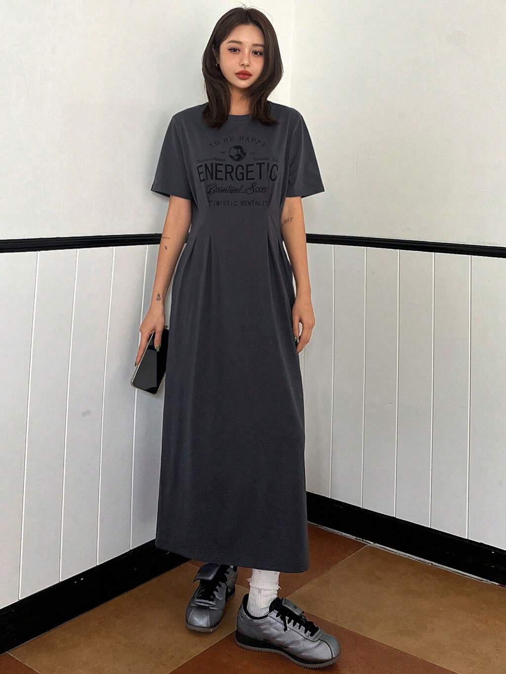Women's Round Neck Short Sleeve Letter Print Casual Oversized Dress Sundress Maxi Dress