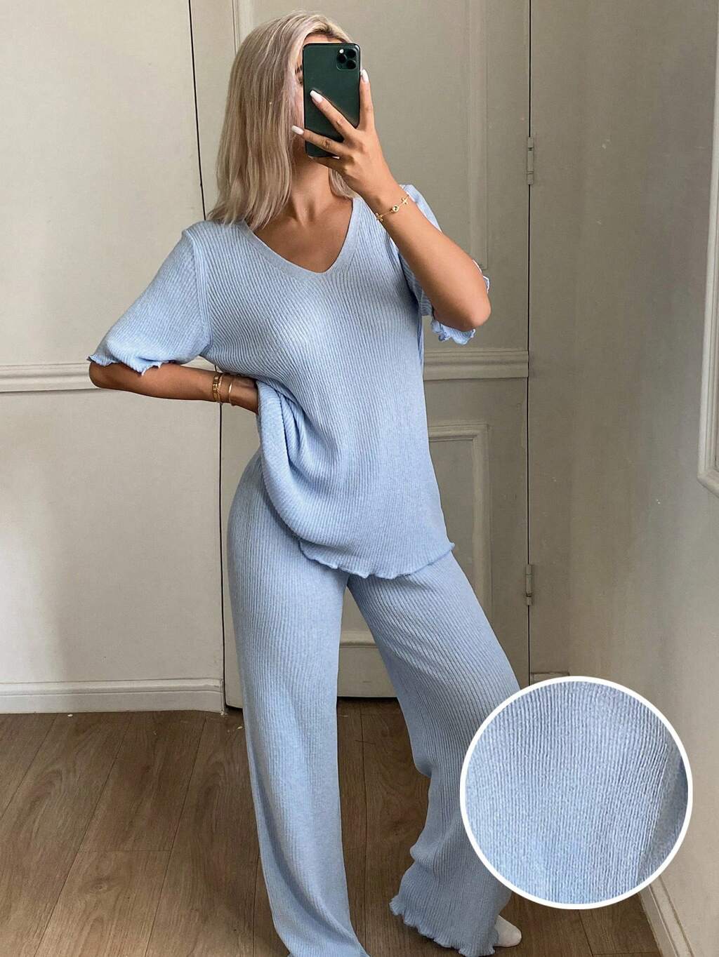 Women's Minimalist Ribbed Knit Loungewear Set, Autumn/Winter, Fall Clothes Pajama, Cozy Outfit
