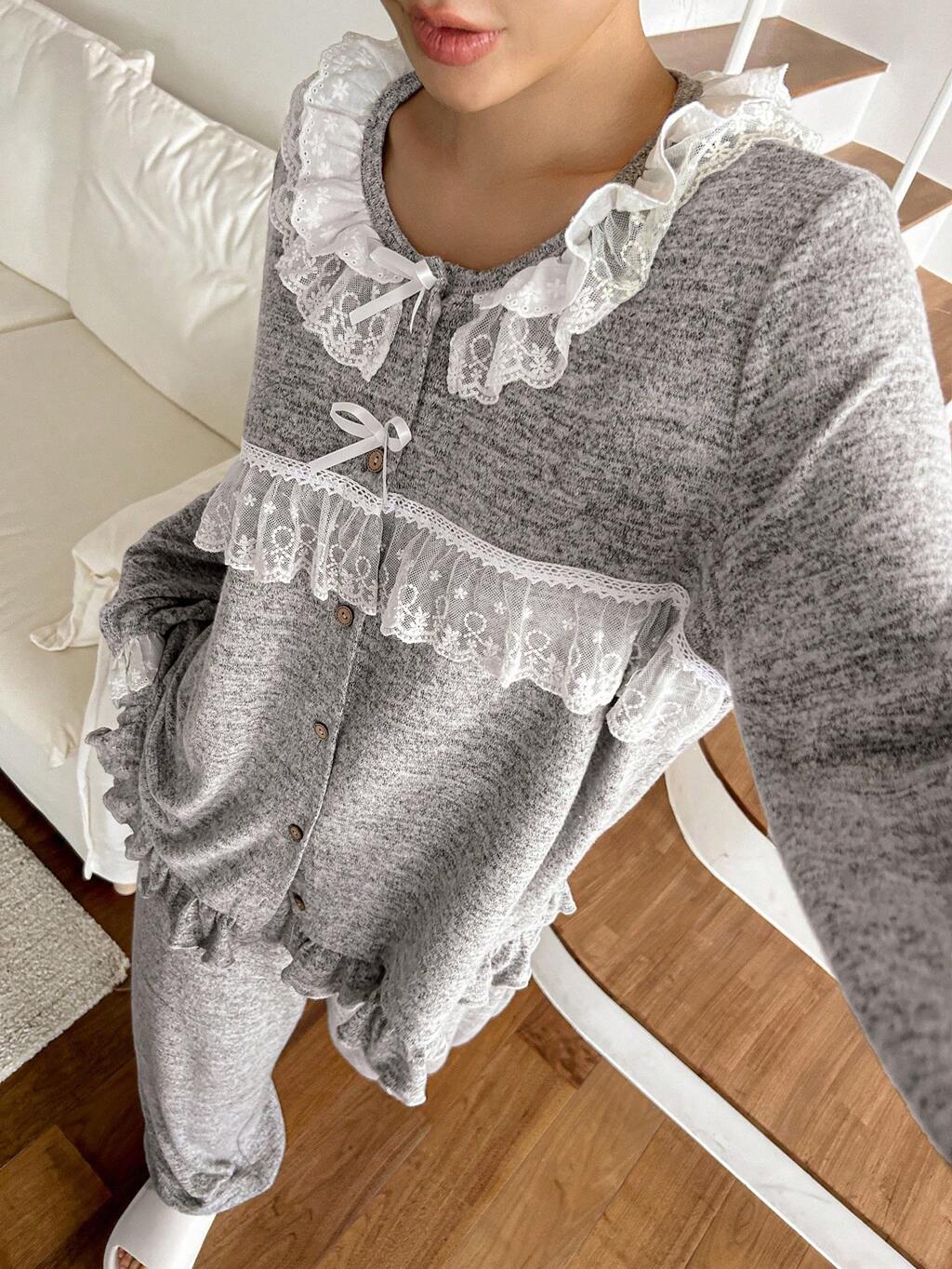 Elegant Soft Knit Lace Patchwork Women Pajama Set