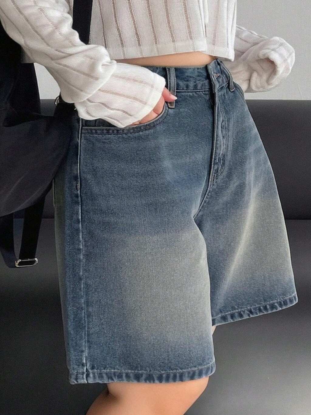 Dazy Plus Solid Color Casual Versatile Plain Denim Shorts, Plus Size Street Style For Women, Spring/Summer