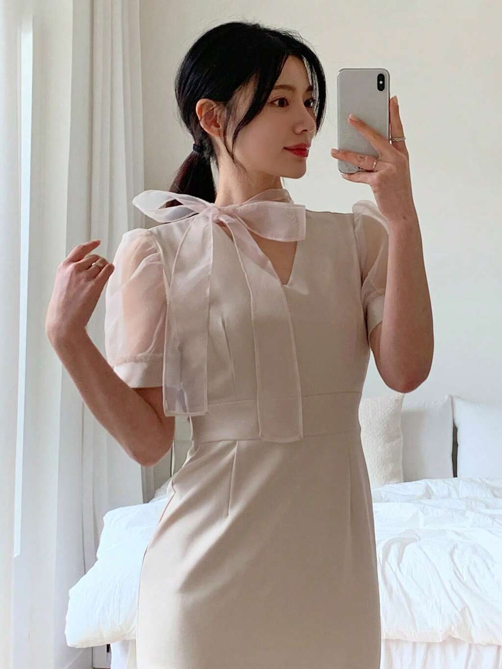 Elegante abito bianco, adatto per primavera/estate, matrimoni, feste, occasioni formali, lavoro/pendolarismo, stile aziendale casual alla moda da donna di vecchio denaro