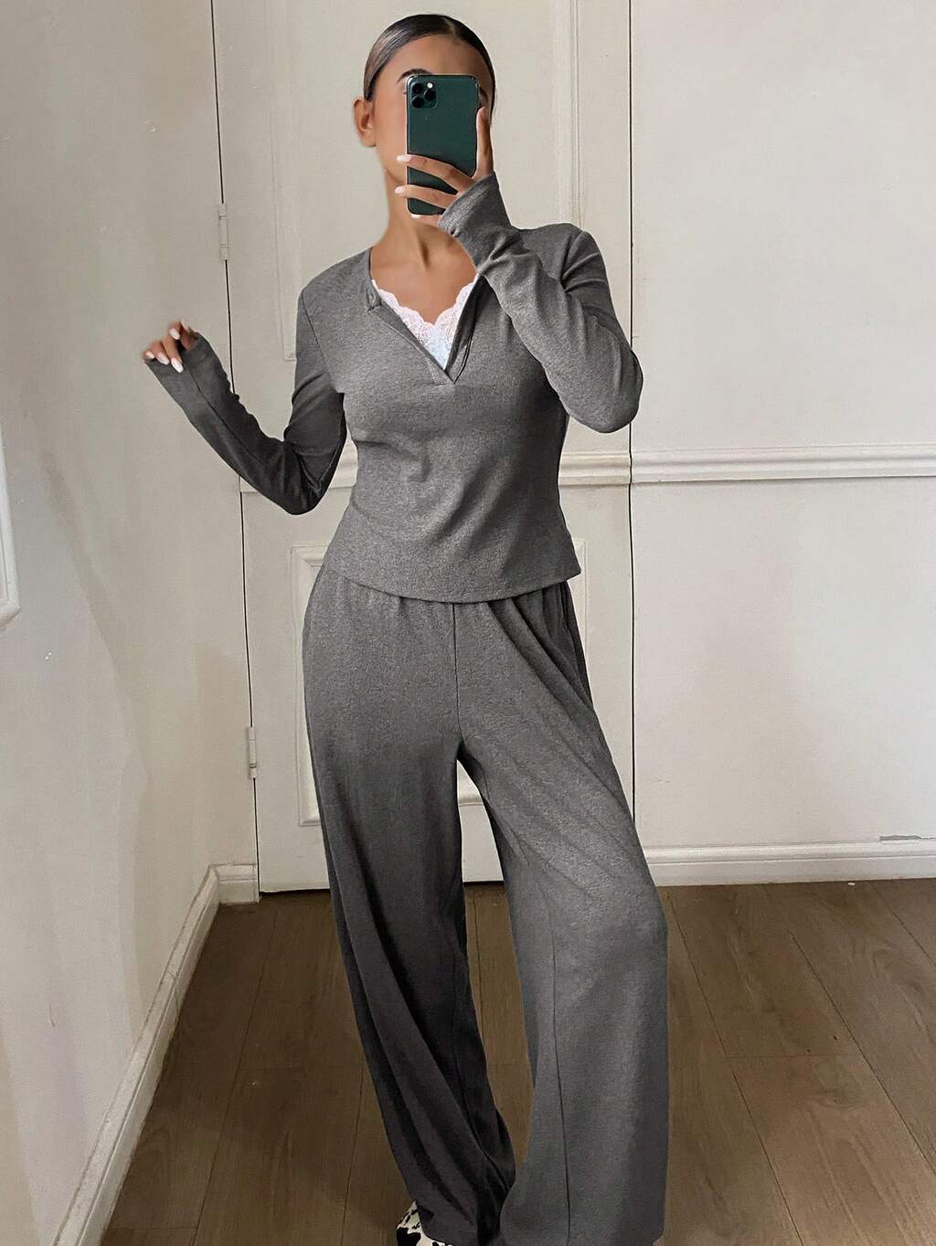 Minimalist Comfortable Knit Fitted Women Pajama Set