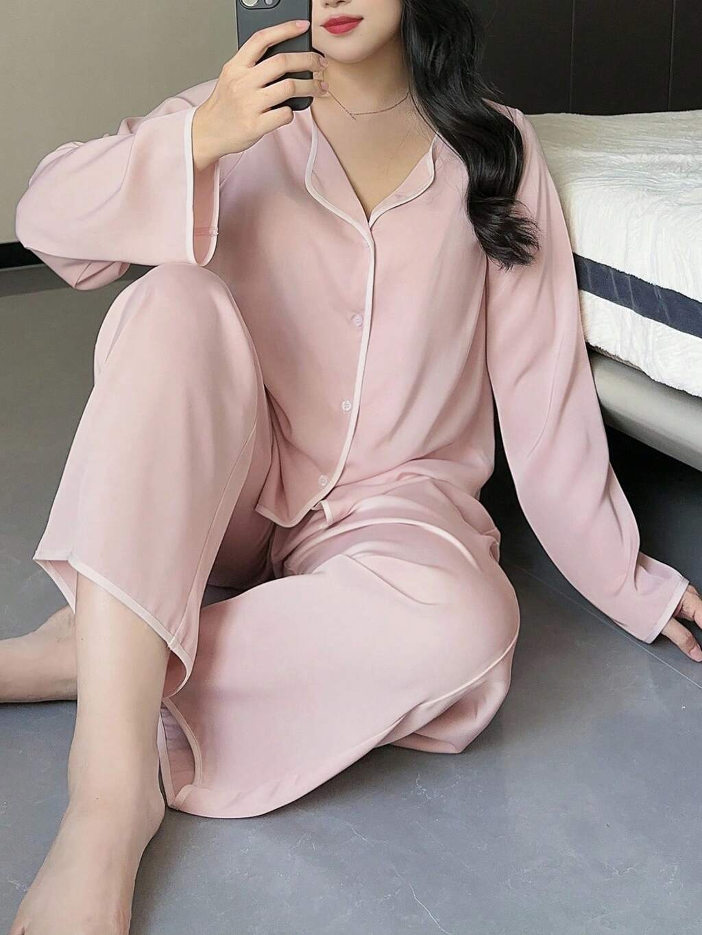 Dazy Plus 2pcs/Set Loose Long Sleeve Top And Long Pants Pajama Set, White, Spring/Summer