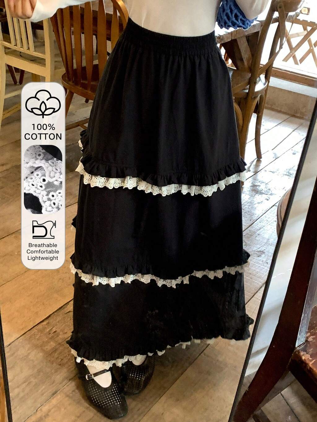 Women's Casual Versatile Contrast Color Lace Patchwork A-Line Skirt
