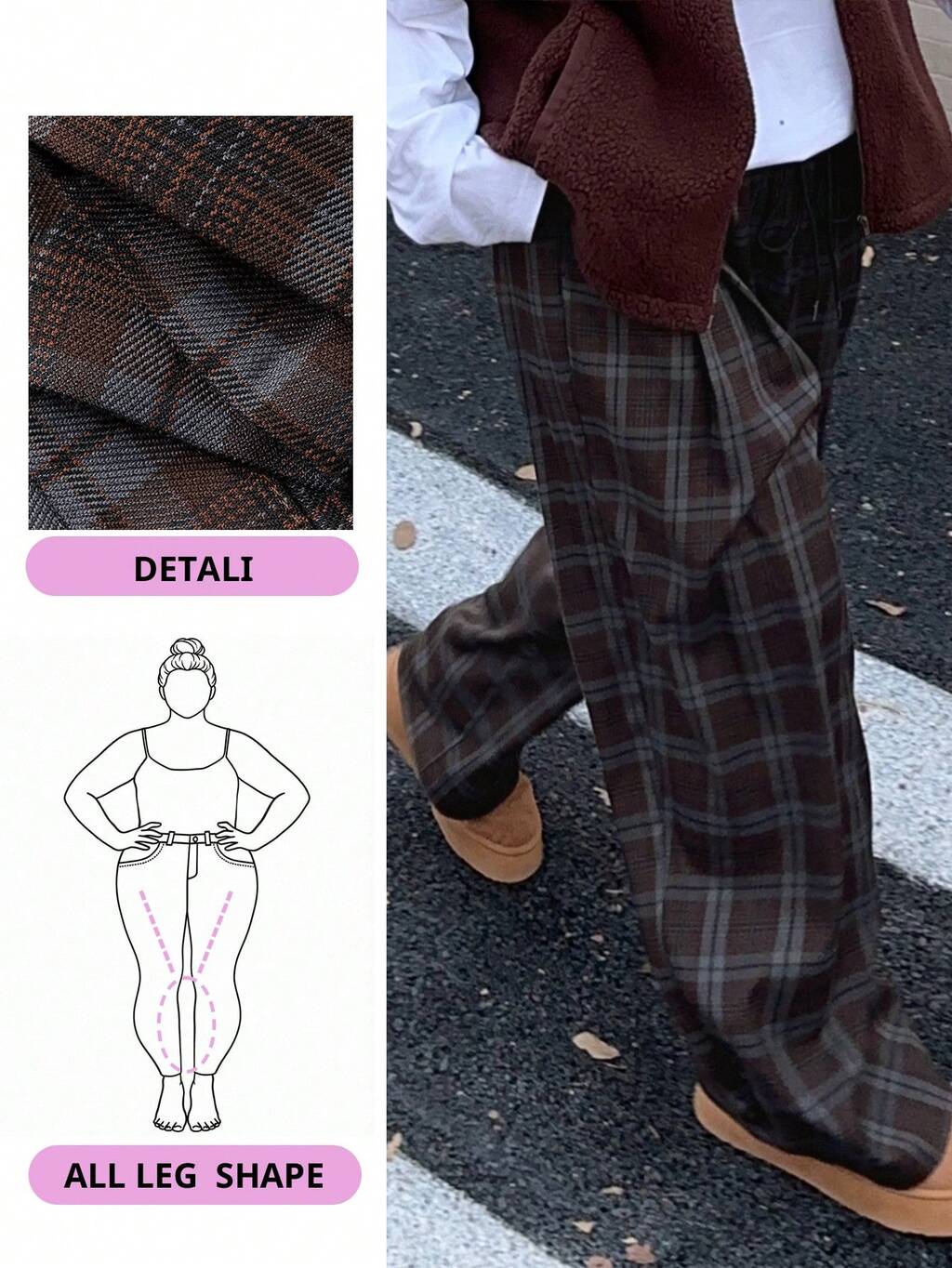 Dazy Plus Plus Size Women Plaid Elastic Waist Drawstring Loose Straight Leg Casual Pants, Street Style