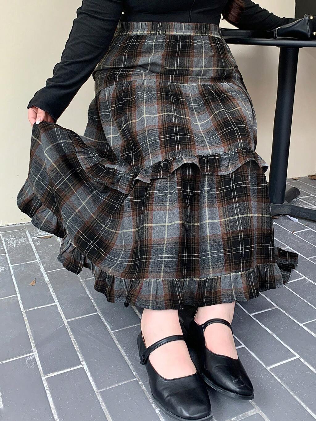 Dazy Plus Valentine Plus Size Plaid Pattern Flowy Skirt, Spring/Summer,Ruffle