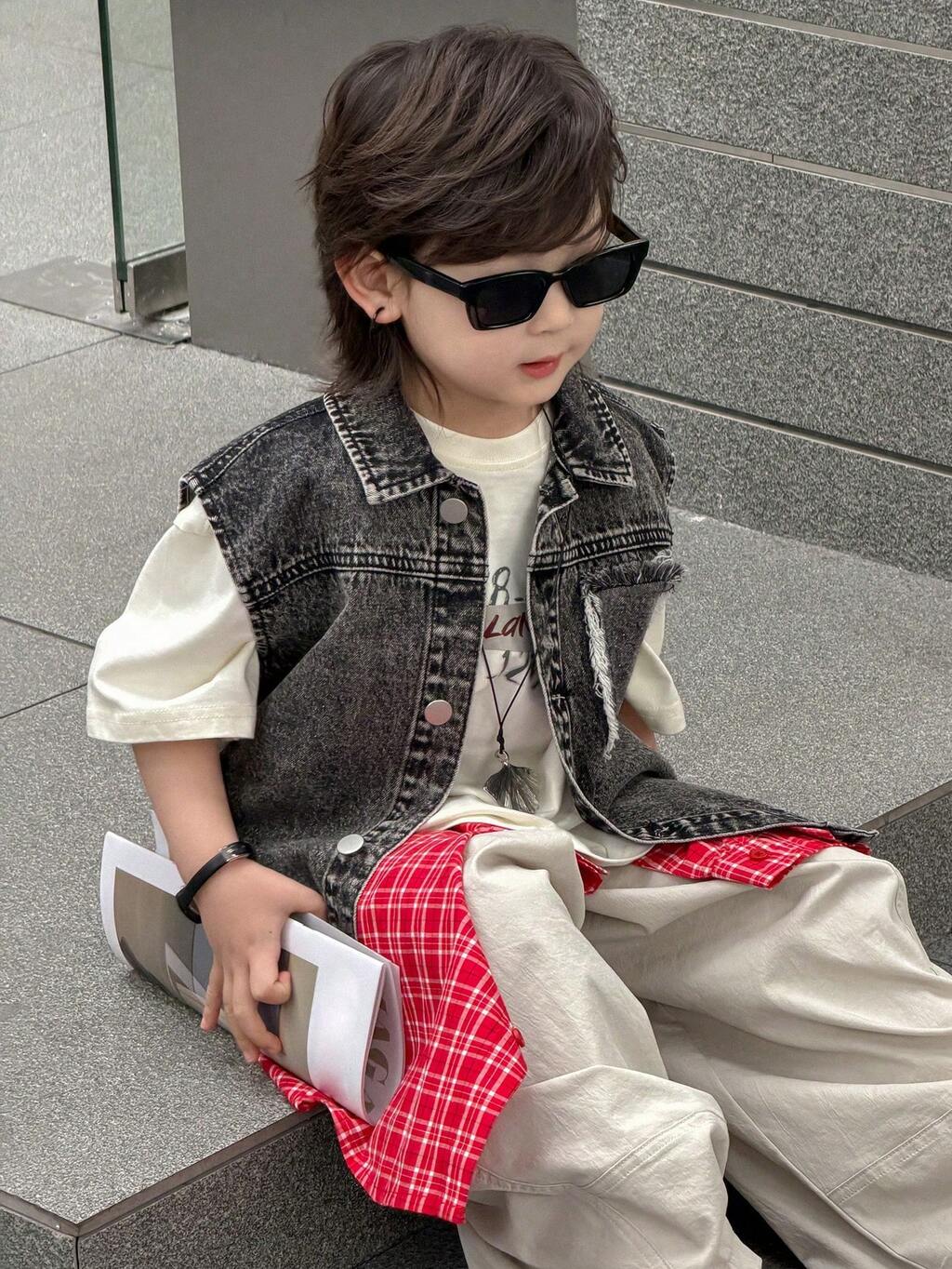 Veste en jean à la mode pour jeunes garçons, été