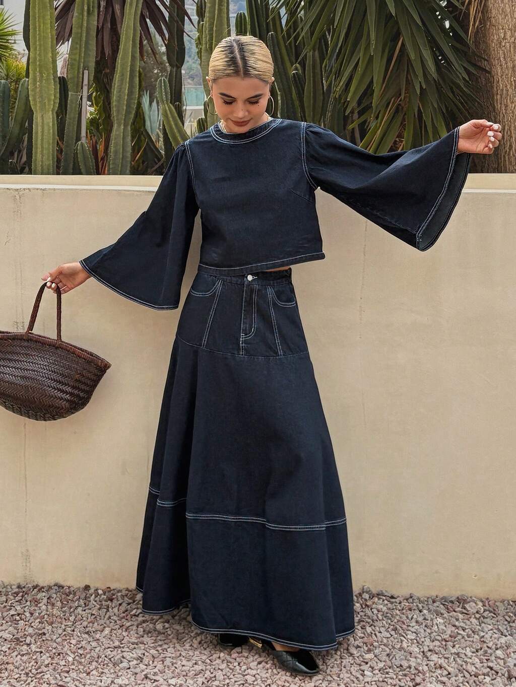 Women's Pullover Shirt And Denim Skirt Set, Spring/Summer