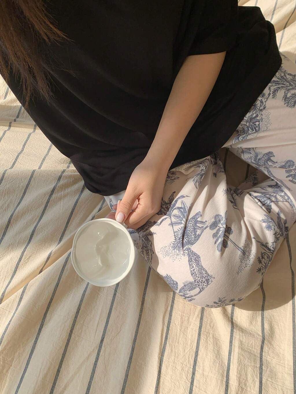 Dazy Plus 2pcs Solid Color Loose Short Sleeve Top And Long Floral Print Pajama Pants Sleepwear Set, Spring/Summer