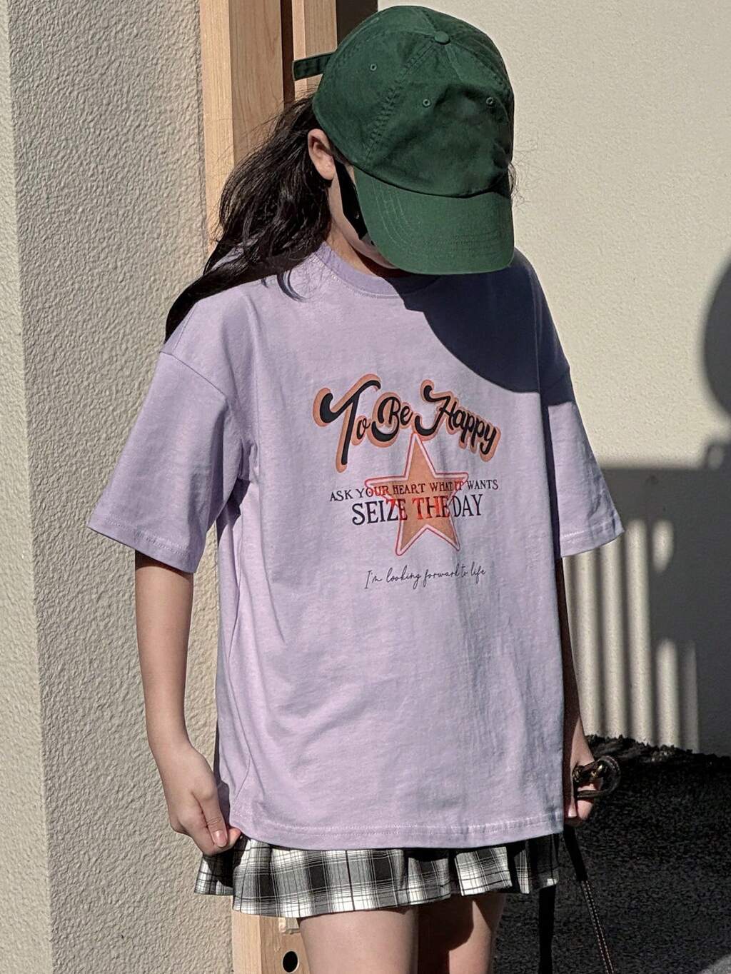 T-shirt à manches courtes imprimé slogan décontracté pour préadolescentes, été