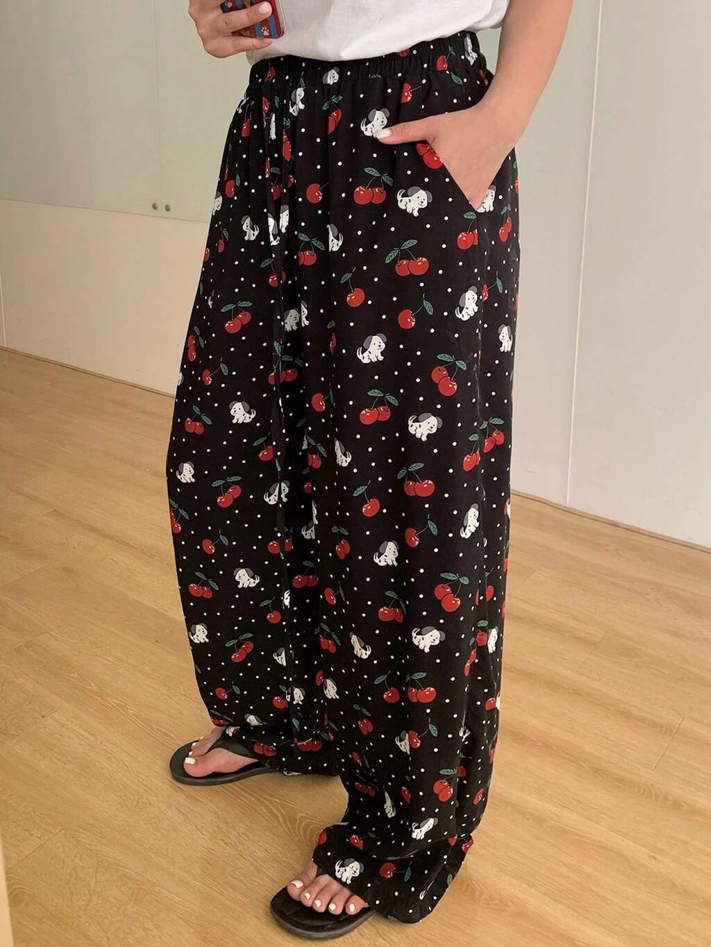 Dazy Plus Plus Size Cherry & Puppy Print Pajama Bottoms