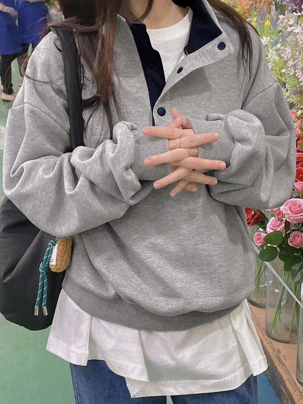 Fashionable Loose Fit Contrast Color Turndown Collar Long Sleeve Pullover Sweatshirt For Women