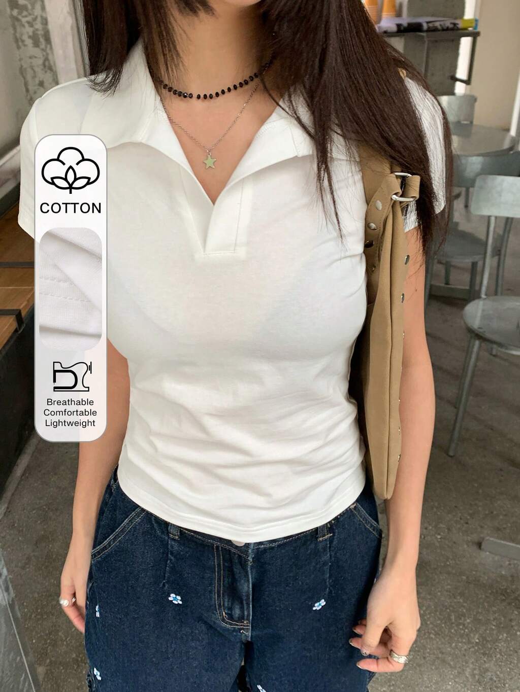 Women's Casual Solid Color Turndown Collar Short Sleeve T-Shirt