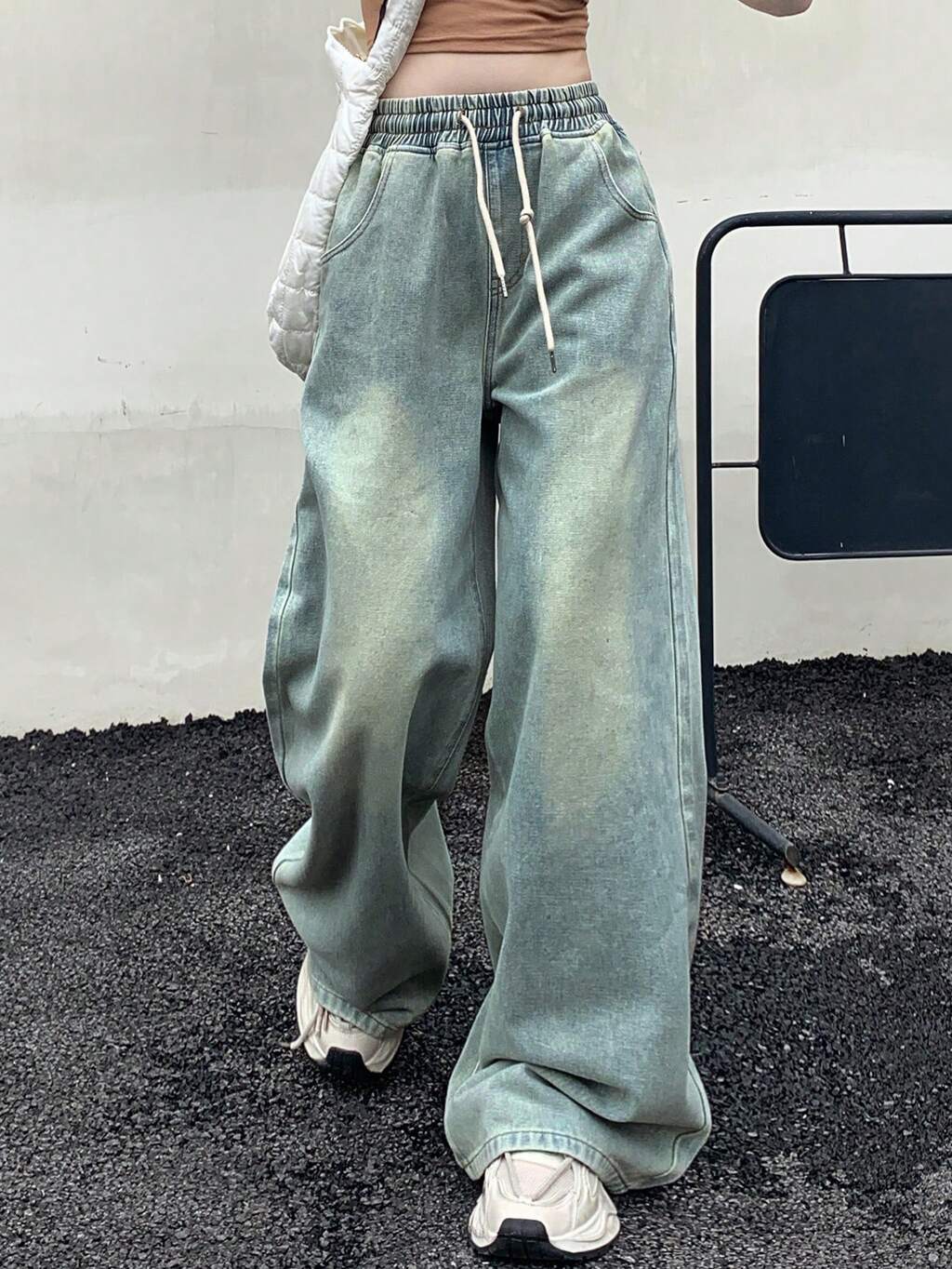 Women's Drawstring Waist Wide Leg Loose Fit Casual Jeans,Baggy Jeans