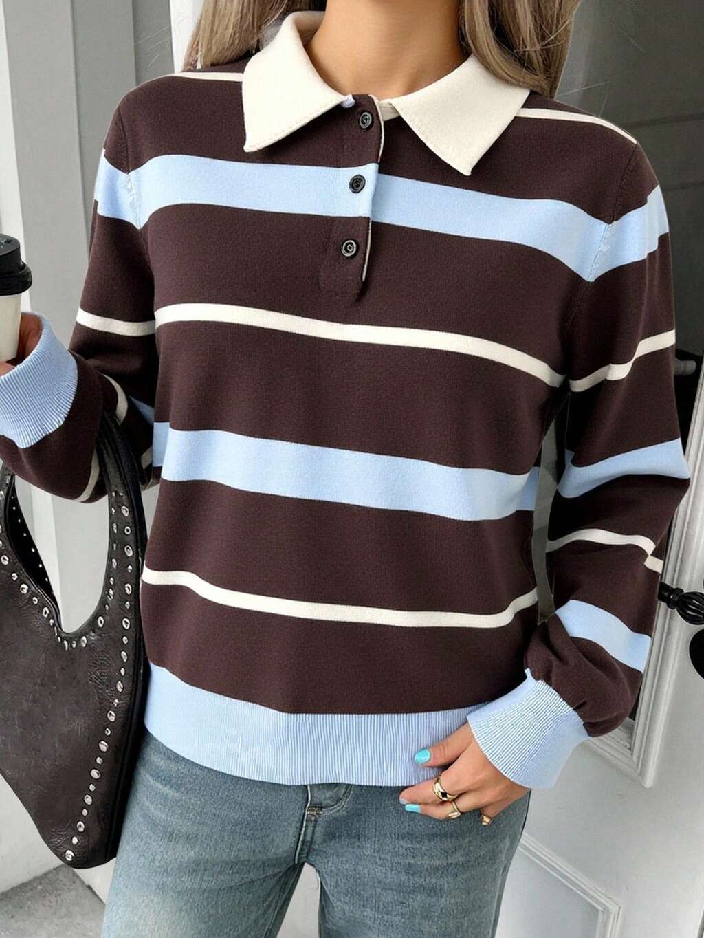 Women's Loose Business Casual Striped Color Block Pullover Sweater, Suitable For Autumn & Winter Office Wear