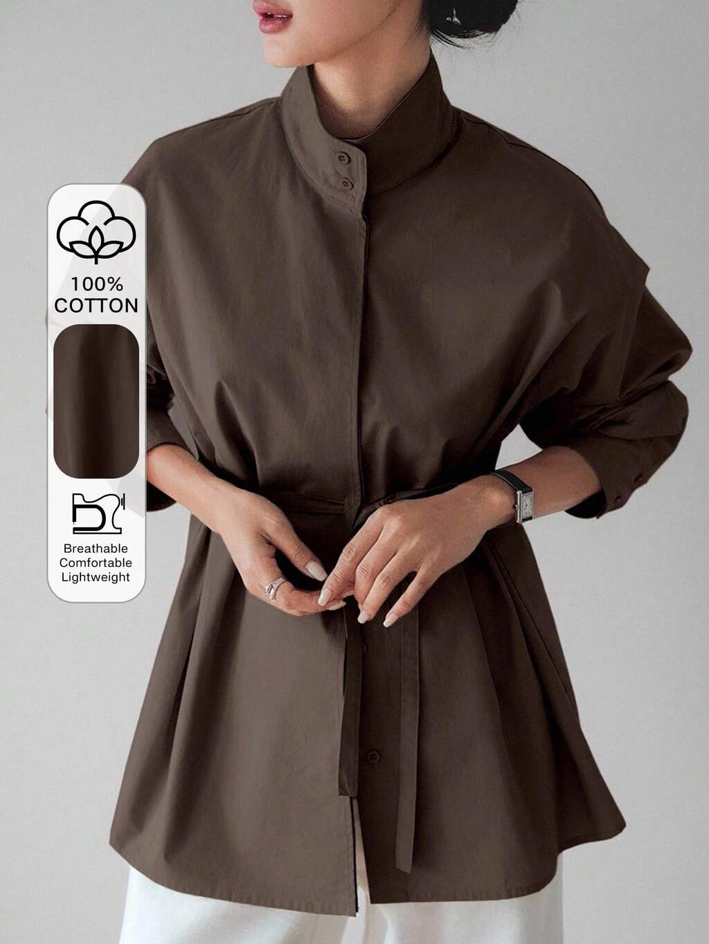 Loose Business Casual Long Sleeve Shirt For Women, With Drawstring Waist Design, Suitable For Office, Commuting, Spring/Summer/Autumn