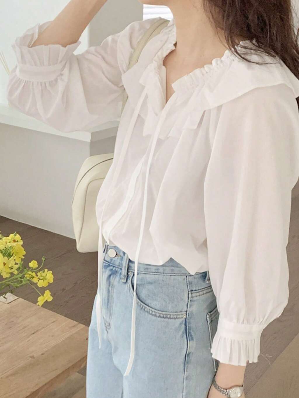 Women's Romantic Ruffle Collar Long Sleeve Blouse Summer