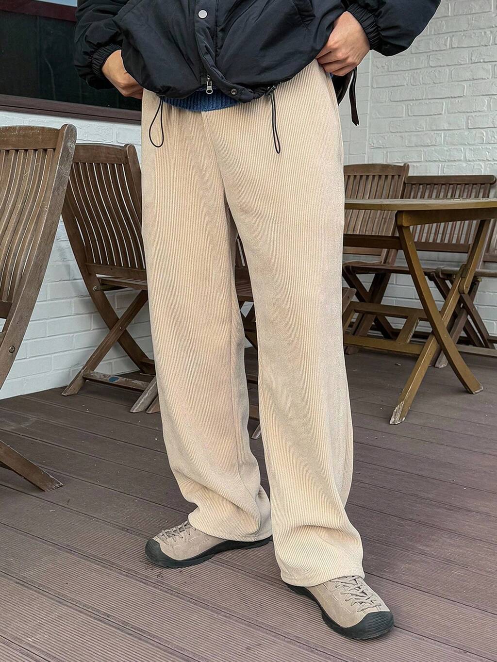 Pantalones elásticos de cintura sólida en beige para hombres, primavera-verano