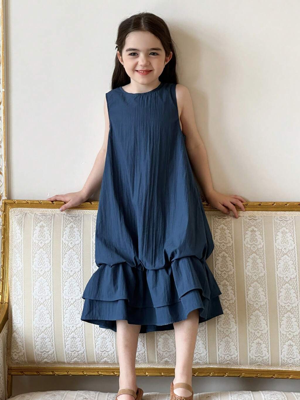 Young Girls Sleeveless Round Neck Casual Dress For Summer
