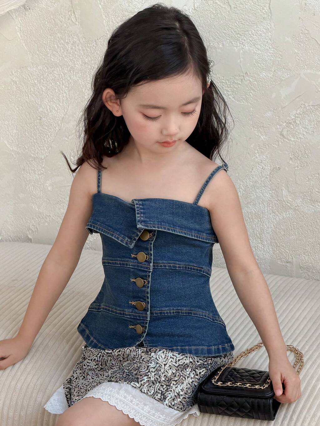 Girls' Denim Patchwork Strap Vest Summer