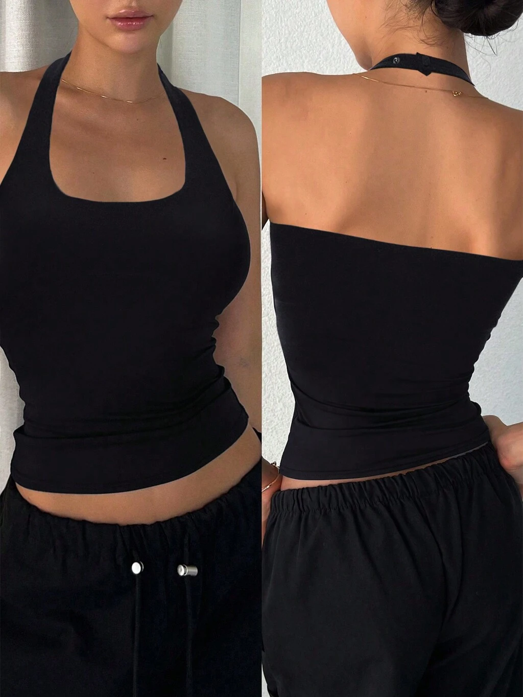 Women's Backless Camisole, Slim Fit Casual Everyday Tank Top,Halter Top