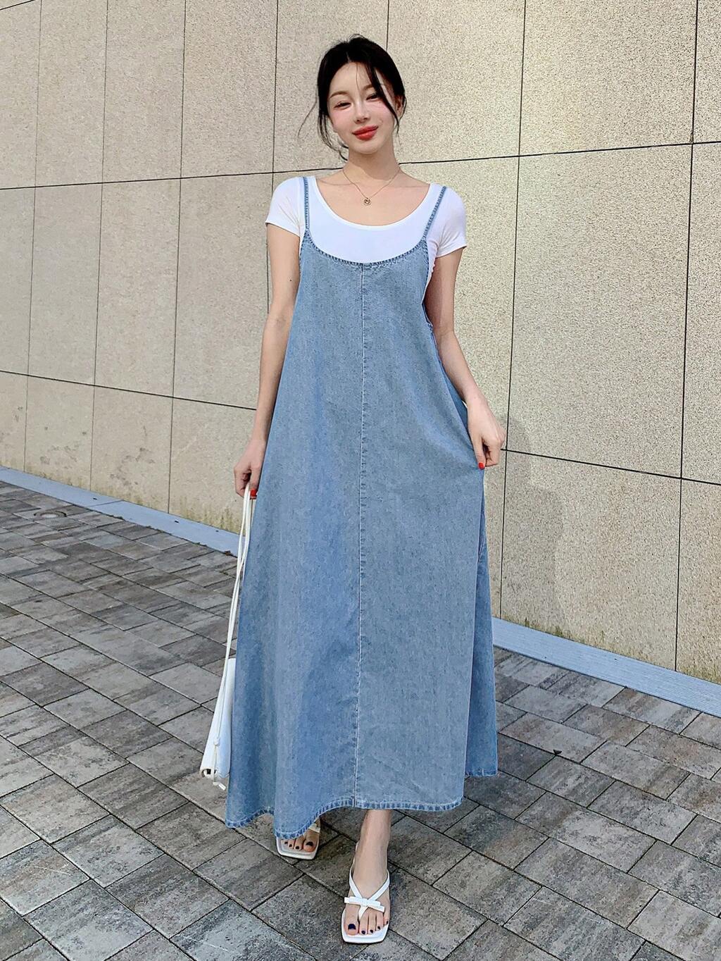 Women's Denim Casual Slip Dress, Simple & Fashionable For Daily Wear Sundress Maxi Dress