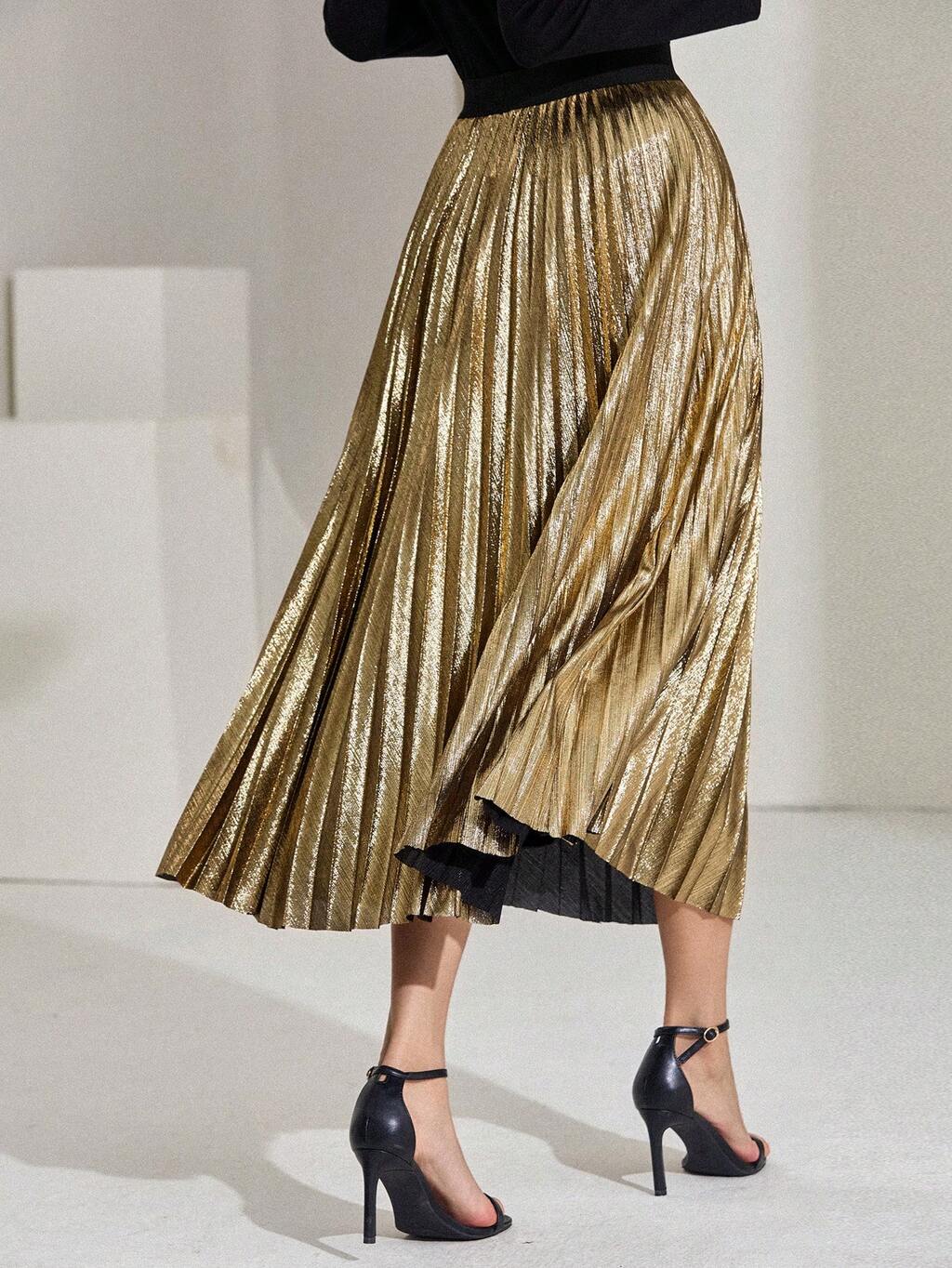 Women's Elegant Pleated A-Line Skirt, Autumn Winter Women Skirts
