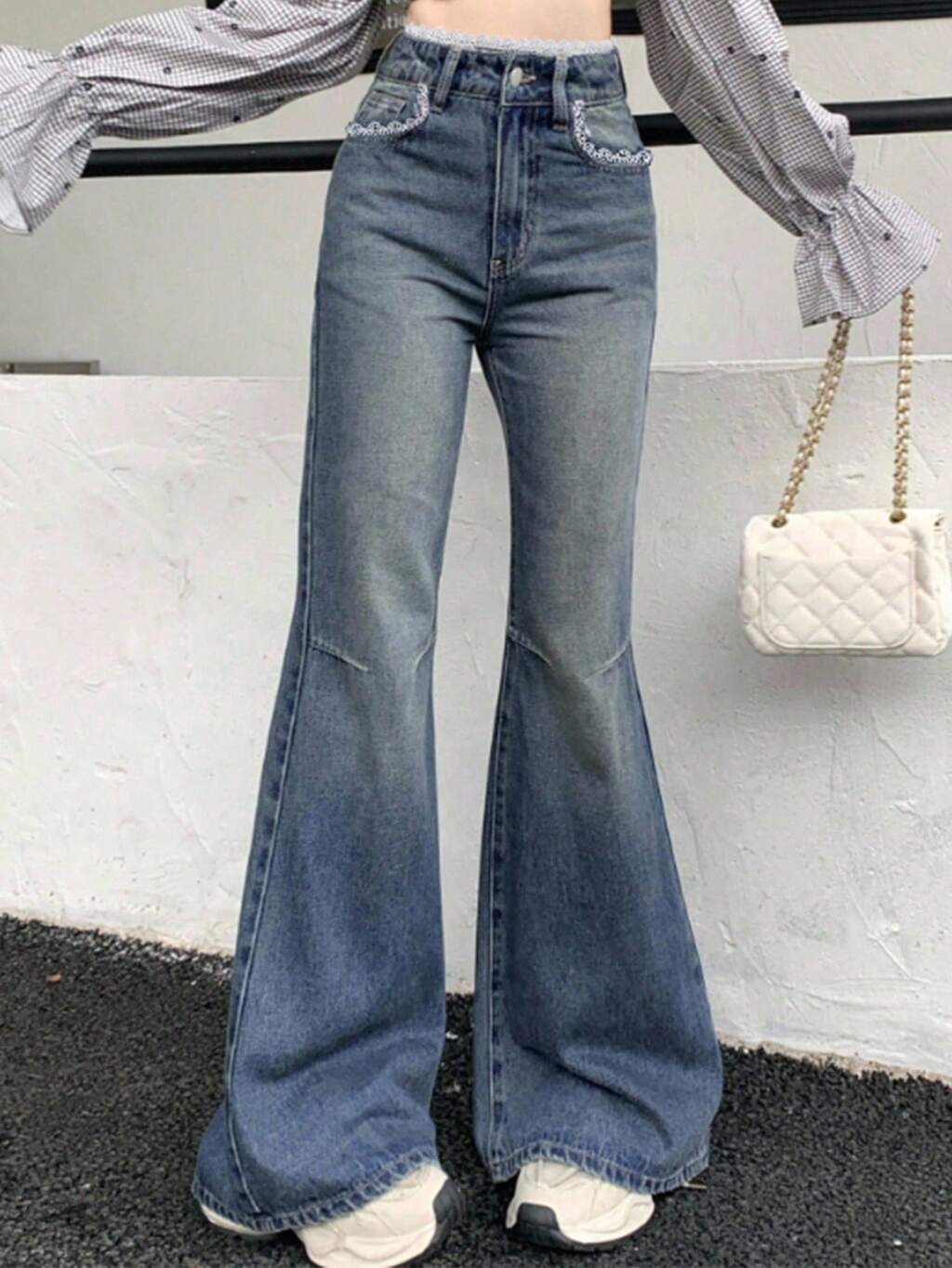 Women's Flare Jeans With Lace Splice