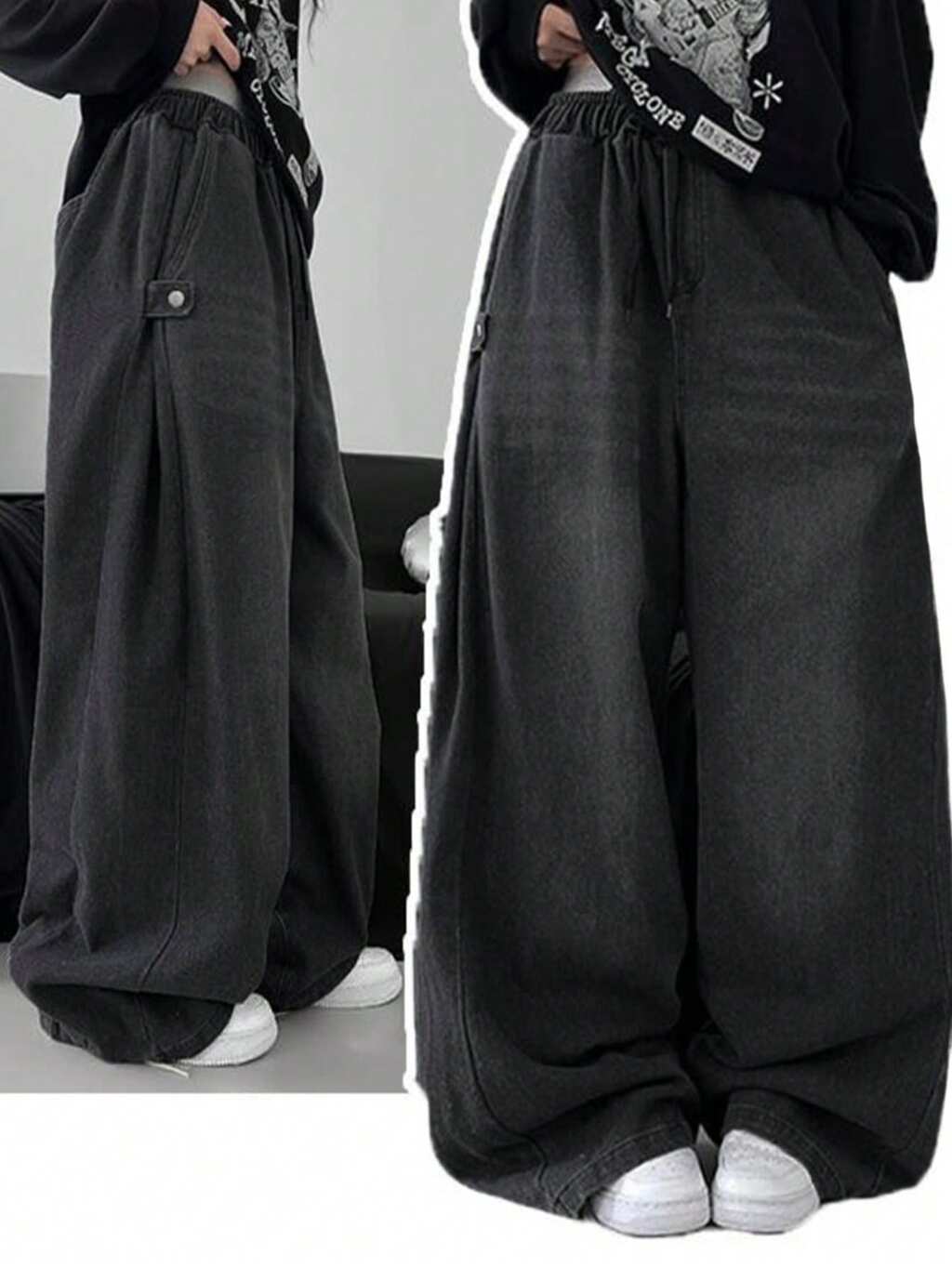 Women's Extra Loose Exaggerate Ankle Slit Wide-Leg Jeans,Baggy Jeans