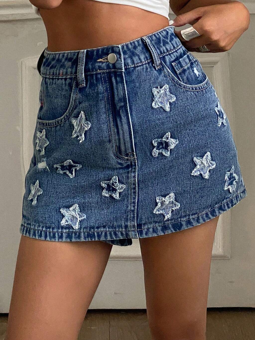 Women's Summer Star Allover Print Embroidery Skirt, Casual & Cute Denim Skirt Denim Shorts Jorts
