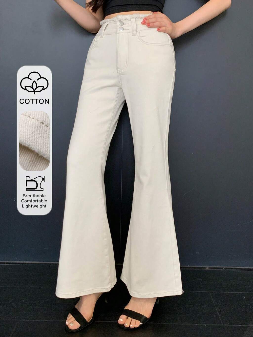Casual Style Plain Color Frayed Waist Flare Women Jeans