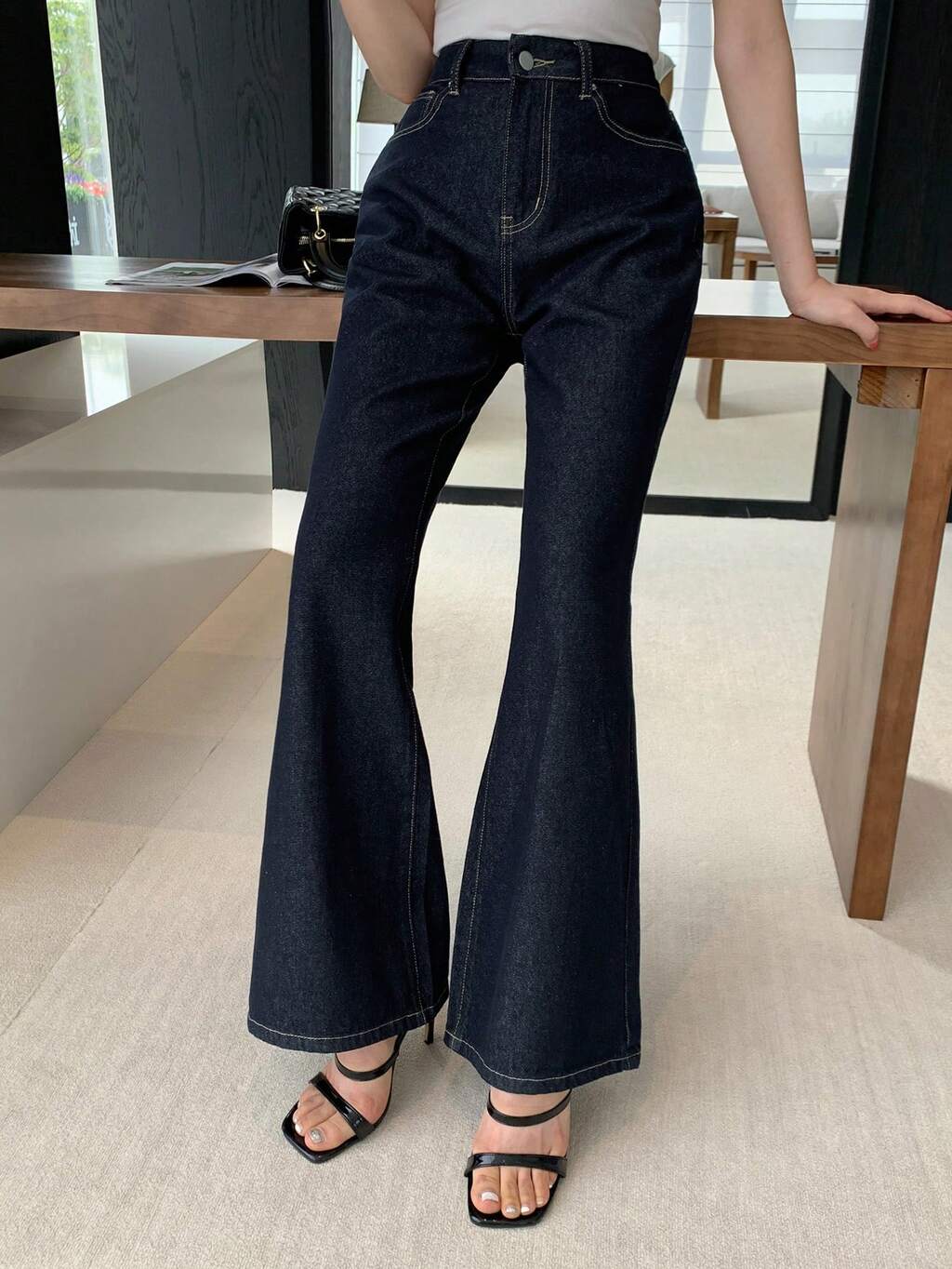 Women's Solid Color High Waist Fashionable Versatile Casual Flare Jeans