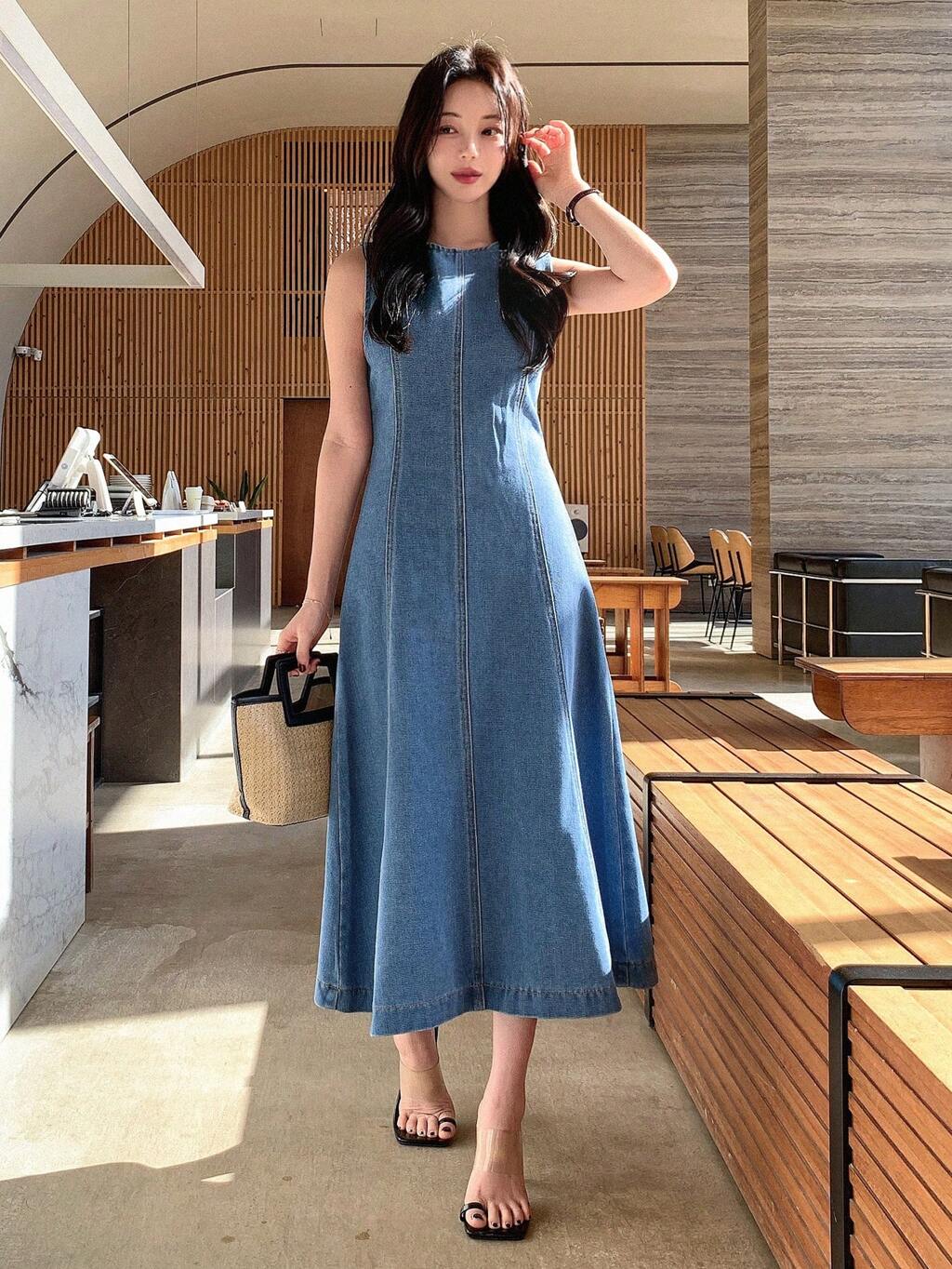Sleeveless Denim Dress, French Elegant Dress For Women, Summer