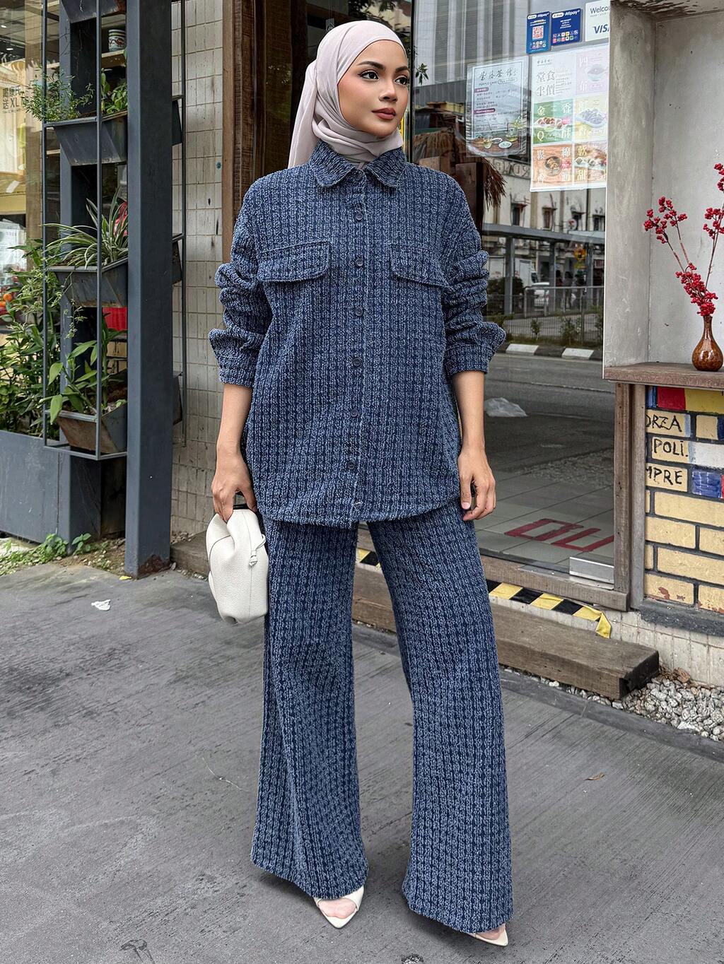 Women's Collared Casual Shirt & Loose Denim Pants Suit, Korean Style