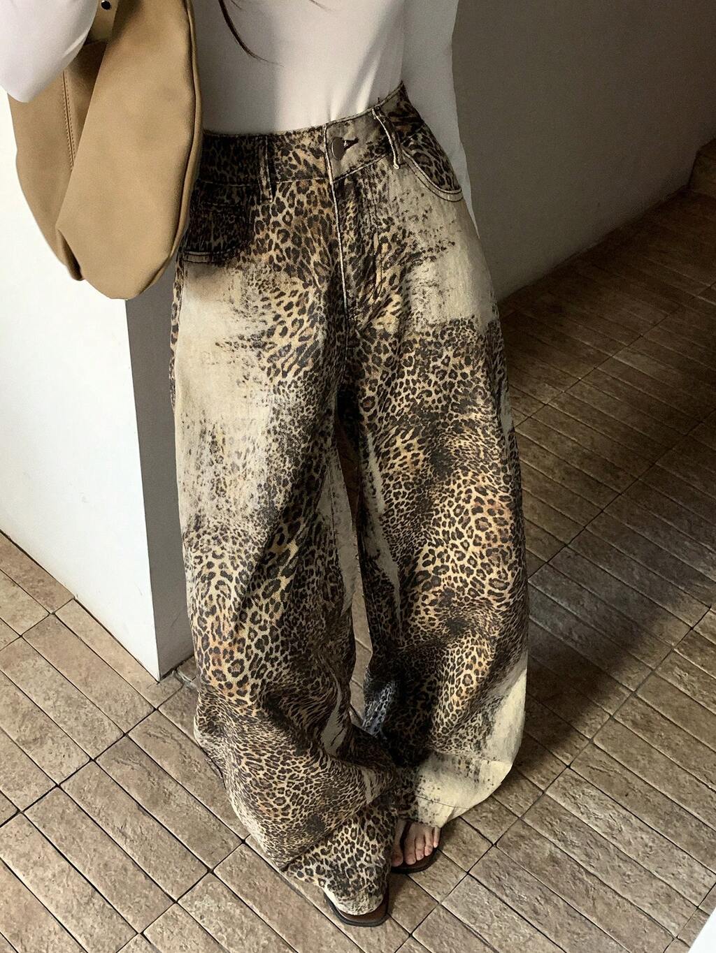 Autumn New Loose Casual Leopard Print Women Jeans
