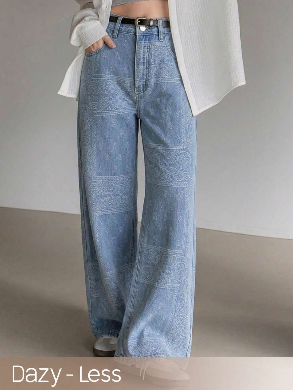 Women's Textured All-Over Print Loose Straight Leg Jeans, Suitable For Spring & Summer
