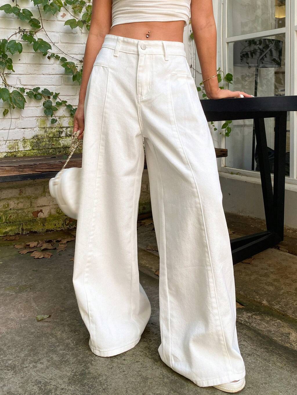 Women's Casual Solid Color Pleated Wide Leg Jeans