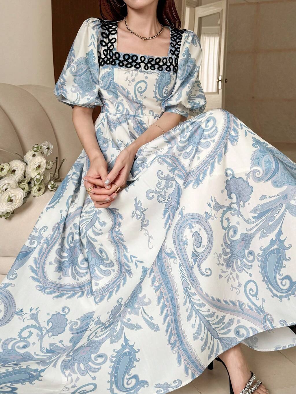 Women's Vacation Cashew Print Tie Waist Elegant Mid-Length Dress Business Casual Woman Sundress
