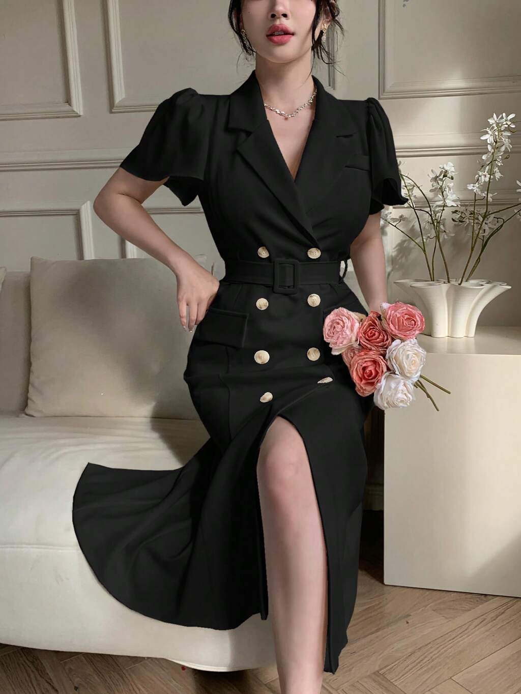 Vestido Longo de Blazer com Colarinho Elegante em Patchwork para Mulheres, Vestido de Convidada de Casamento da Primavera