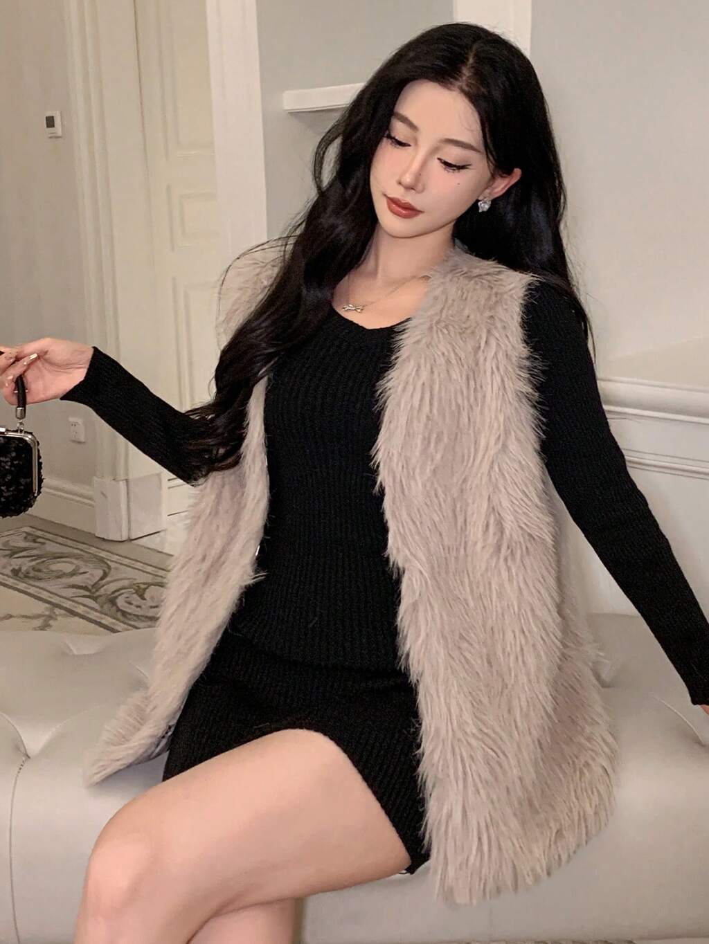Women's Sleeveless Fitted V-Neck Jacket In Solid Color Fall,Winter Vest
