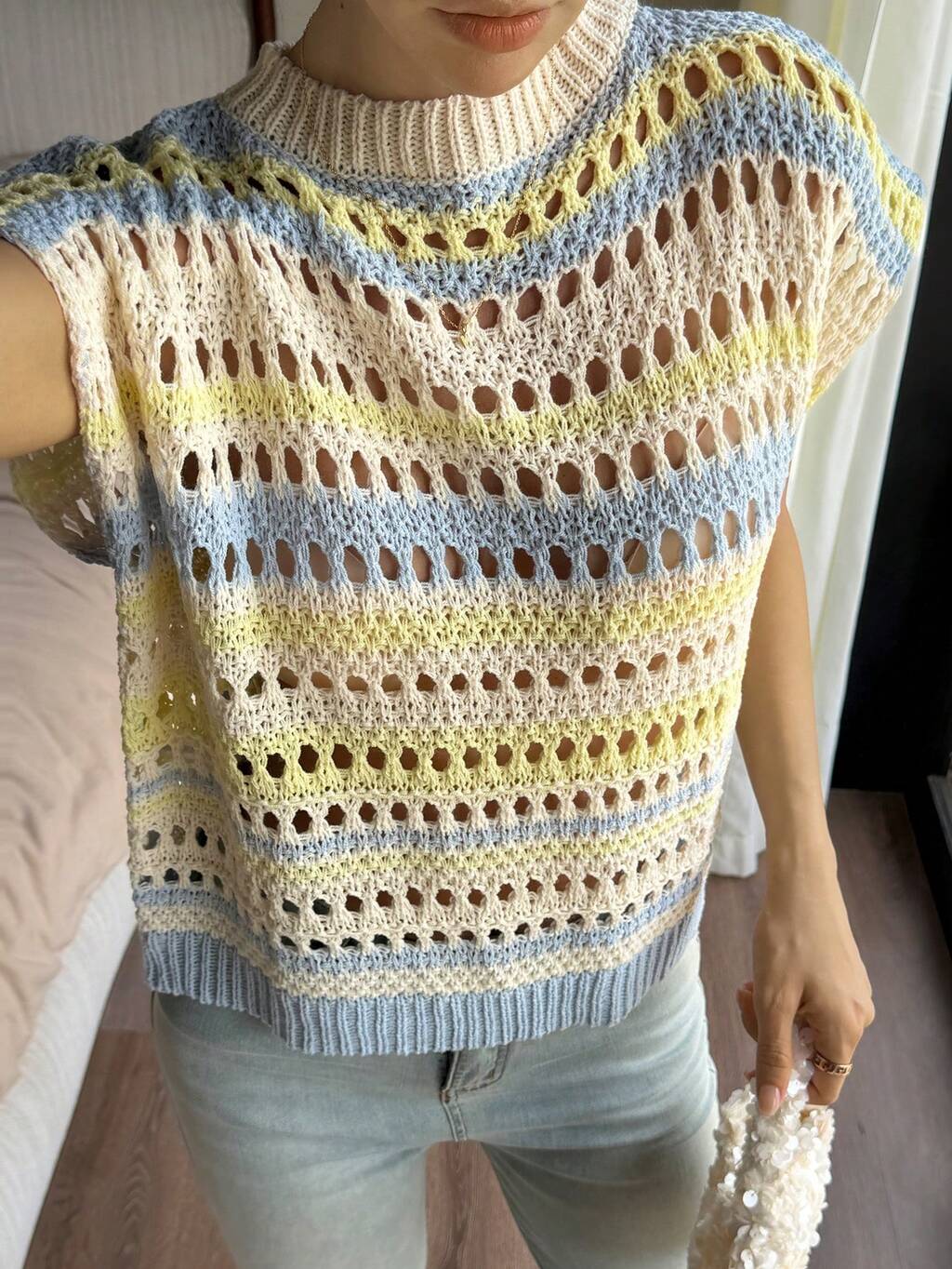 Women's Loose Solid Color Hollow Out Lightweight Casual Vacation Summer Knit Top