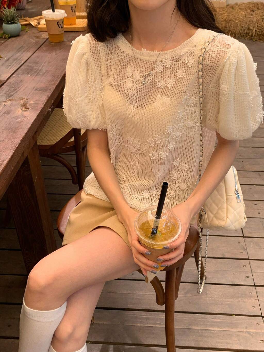 Women's Round Neck 3D Floral Elegant Korean Style Knit Top
