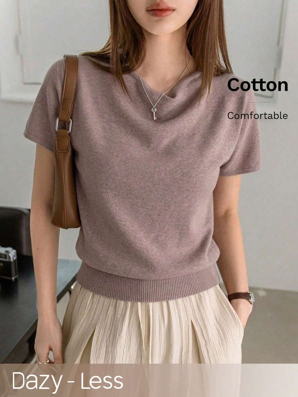 Women's Solid Color Scoop Neck Short Sleeve Casual Loose Knit Top