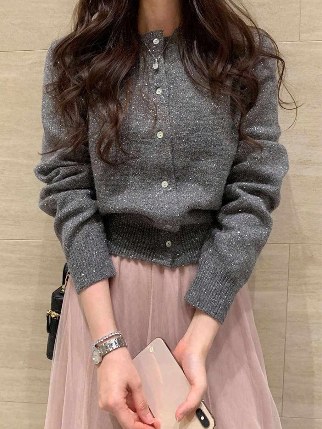 Women's Shiny Sequin Embellished Casual Cardigan Sweater