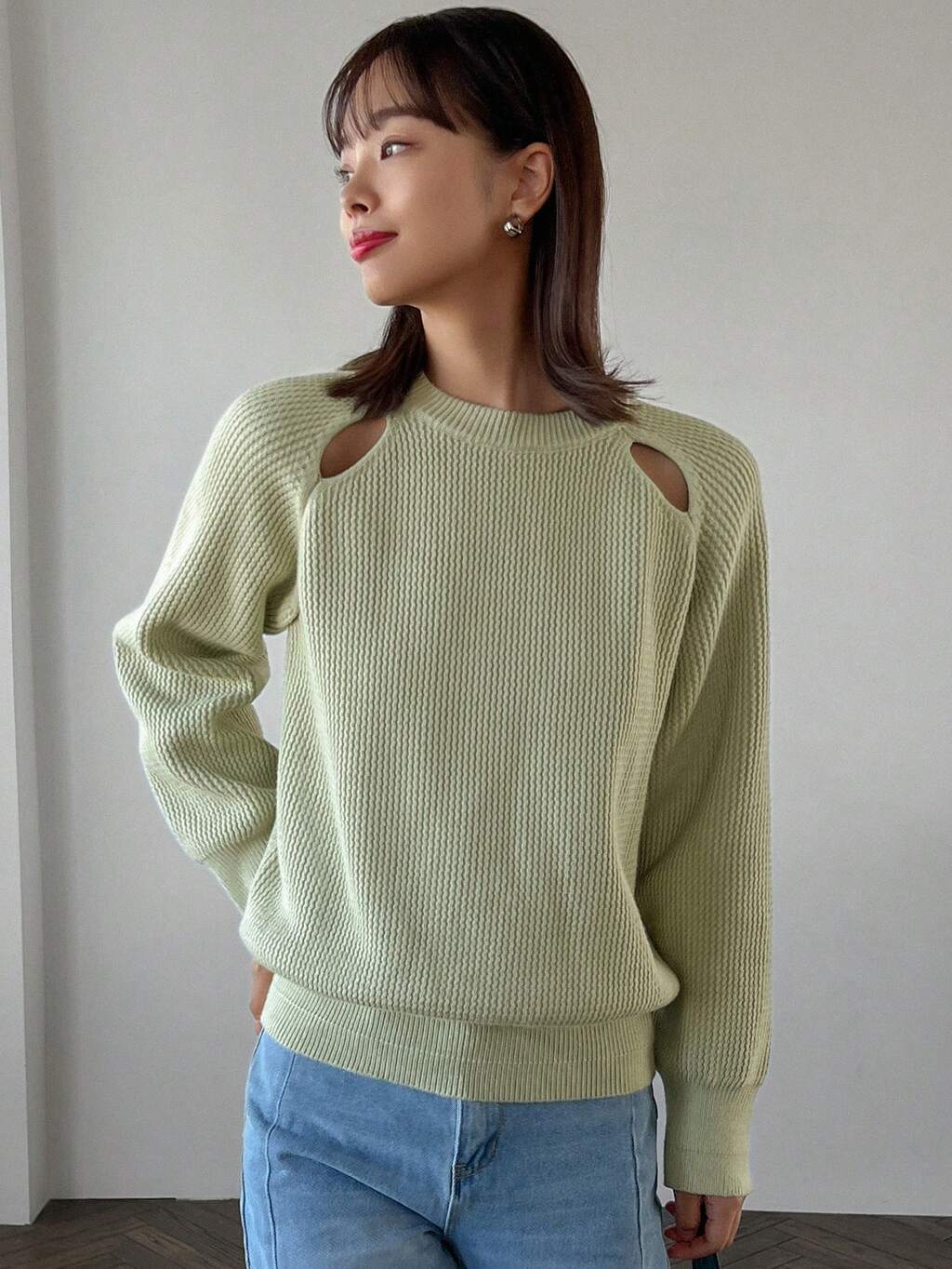 Women' Hollow Out Knitted Sweater With Raglan Sleeve,Fall Clothes