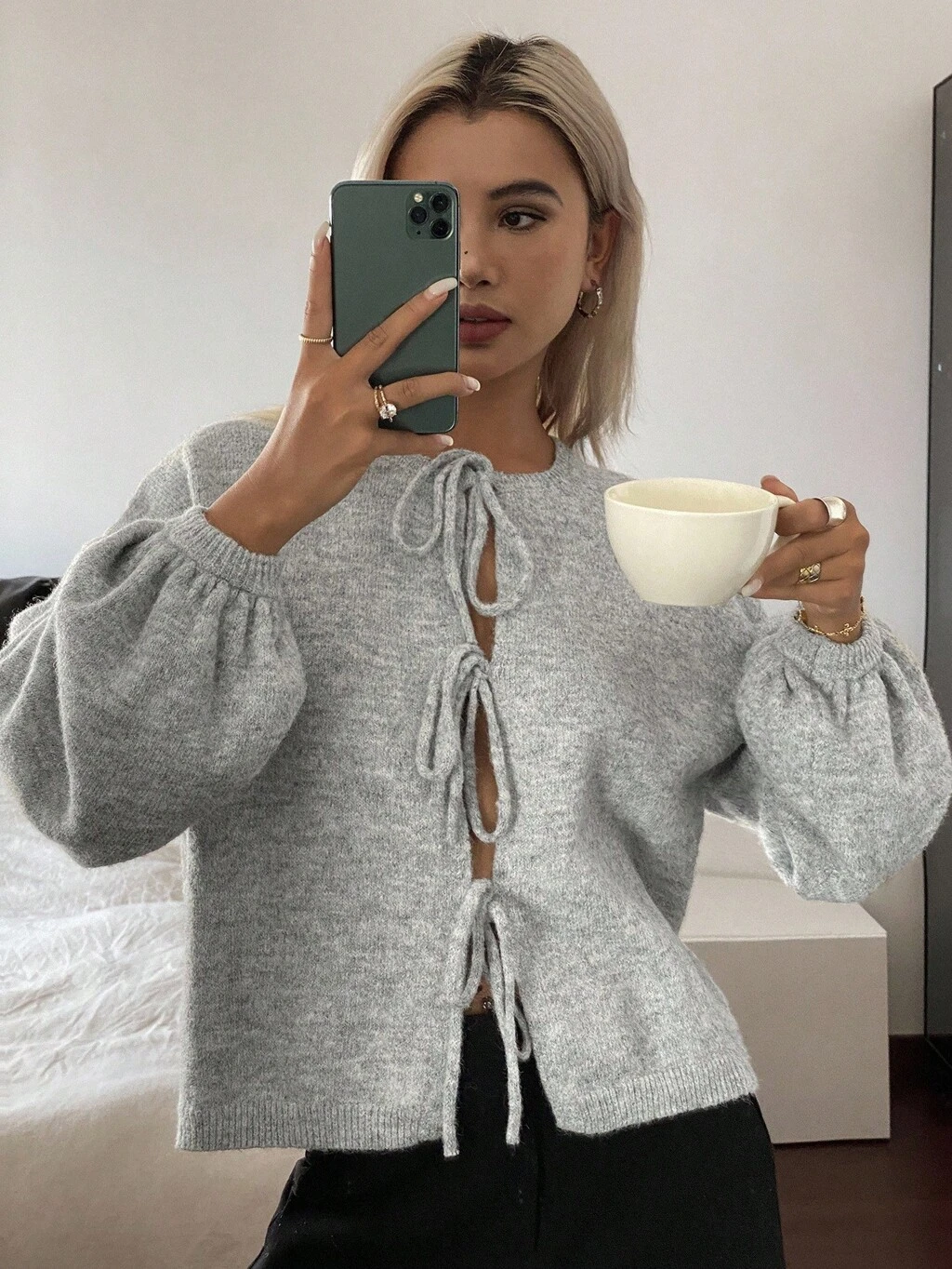 Women's Tie-Front Lantern Sleeve Casual Cardigan,Fall Women Clothes
