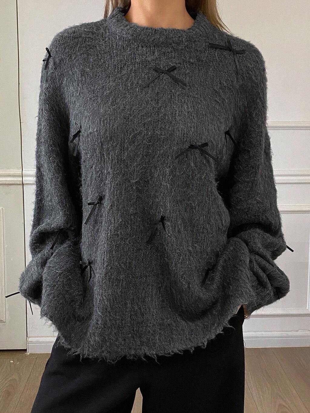 Women's Loose Casual Bow Decor Sweater, Autumn/Winter New Arrival