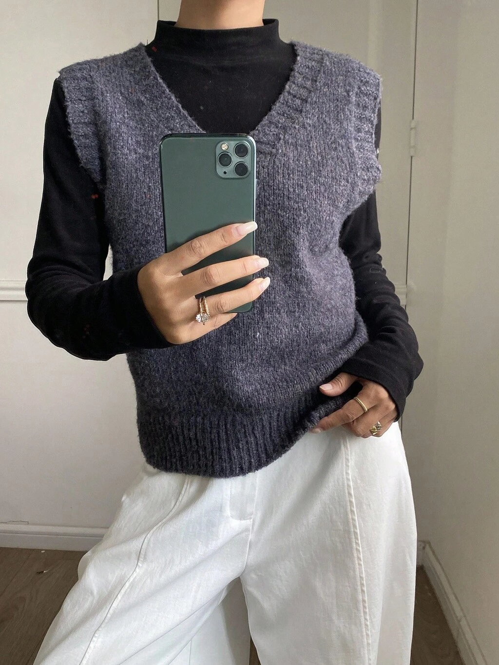 Women's V-Neck Grey Sweater Vest, Autumn/Winter New Arrival